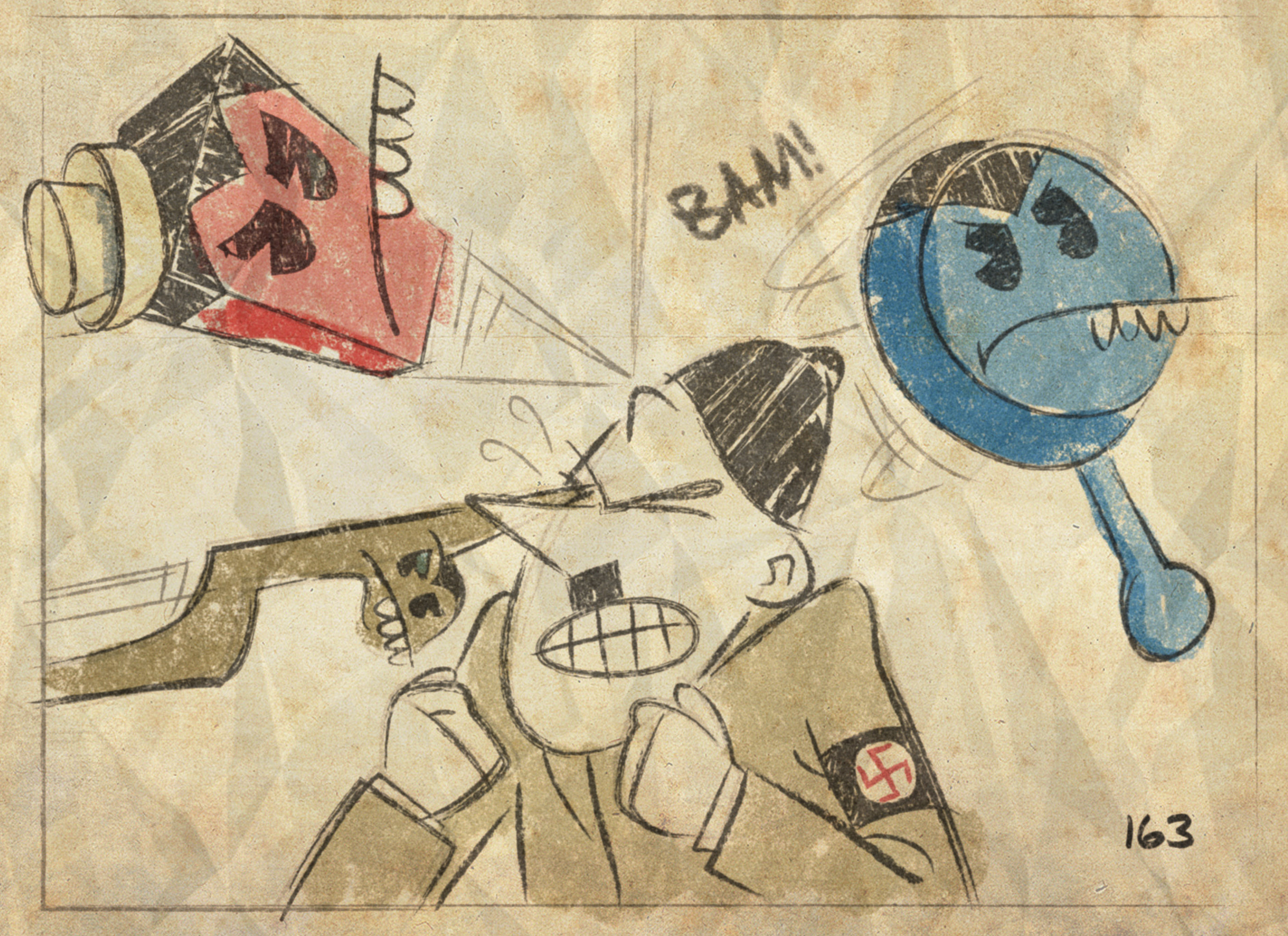With the sudden passing of his father in February of 1942, Crocker Yeeeowwalczyk shuttered the building supply business and converted the building into a full fledged animation studio. By September Crocker christened the new business Yeeeowwalczyk Financially Feasible Animated Cartoons. Before his father’s death, Crocker had been quietly forming an alliance with prominent businesses throughout Butane. The list included Corchem Chemical, Shanker Processed Foods, Glandul•Aire Abodeware, Pfride Pharmaceuticals and the Forceps Toy Company. Established at the advent of World War II, the intent of this business coalition was to use animation as a tool to promote products and patriotism. The US Government funded these short films and distributed them domestically and overseas. Audiences found them entertaining and informative, while the Butane companies enjoyed the promotion. Crocker Yeeeowwalczyk called it Promotainment.